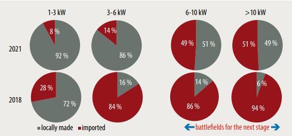 图2 2018年与2021中国高功率光纤激光器国产化趋势。