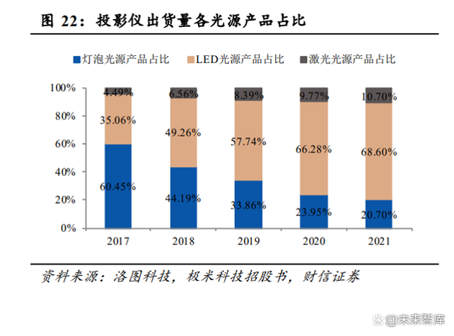 2023年上半年,中国智能投影(不含激光电视)市场销量为279.1万台,激光光源产品(不含激光电视)的线上销量占比达到7.2%.