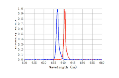 图4:课题组一为该项目已开发出红光LD芯片的光谱曲线,室温和40摄氏度(发表于ICDT-2018)