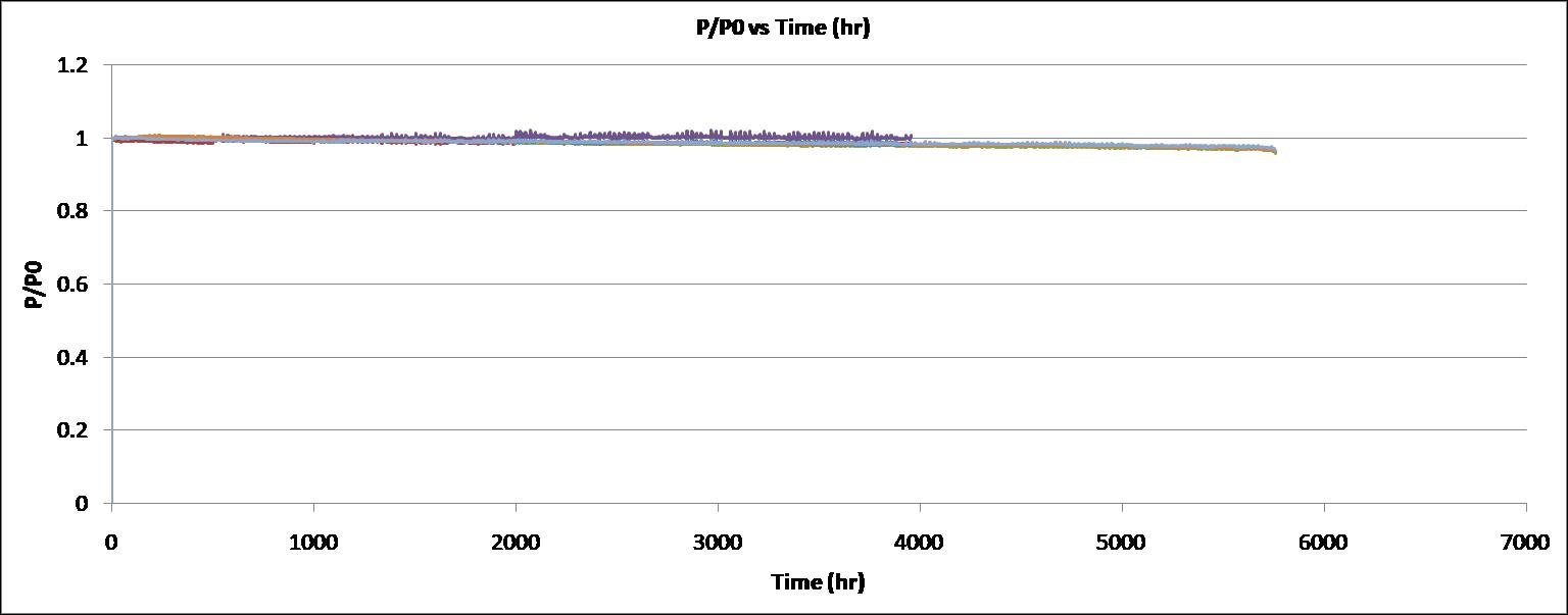 图2:808nm 190m发光区域宽度、4mm腔长的芯片,封装为COS后在10W连续输出功率下的长期老化测试情况, 7个COS器件的老化时间累计超过2.8万器件小时,无器件失效而且功率稳定。该芯片的COD功率超过18W。