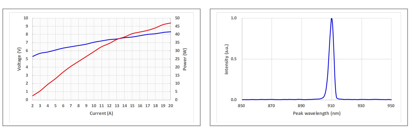 图3:瑞波光电25W905nm 脉冲式半导体激光芯片的PIV曲线图