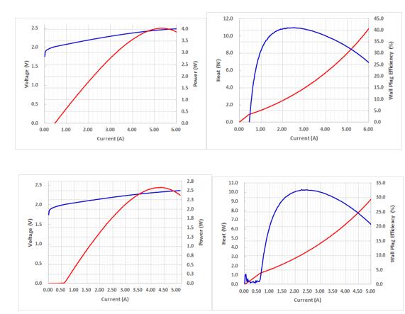 通过对芯片不断地结构改良,瑞波光电解决了大功率红光芯片的功率和可靠性问题,功率转换效率最大值达到40%,这将大大有助于减少激光电视或投影仪的整体耗电量。室温下连续电流驱动时的热翻转功率接近4W。为保证长期可靠,瑞波公司在1W激光功率条件下完成了1.3万小时的在线寿命测试,从数据判断室温下的寿命预期超过6万小时。使用温度为-5~40℃,确保业界顶级水平的工作温度范围。