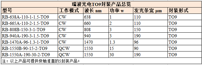 同时,瑞波可以接受TO9系列产品的 OEM代工,涵盖所有的大功率激光芯片TO9封装,也能够进行对应的快轴准直的代工。