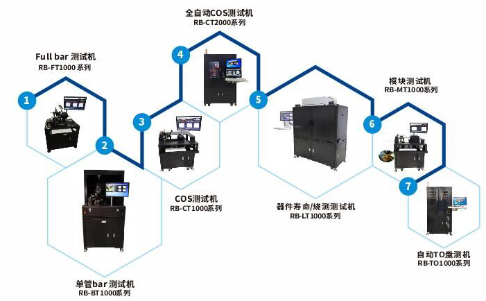 本届慕尼黑上海光博会上,瑞波还展出了支持50A以上的大电流老化设备,新一代全自动COS测试机,以及面向红绿蓝激光 TO器件的全自动盘测机等新型测试设备。通过稳定的整机性能控制、物料优化和选型,为激光厂家提供整体智能化、高性价比的测试解决方案。