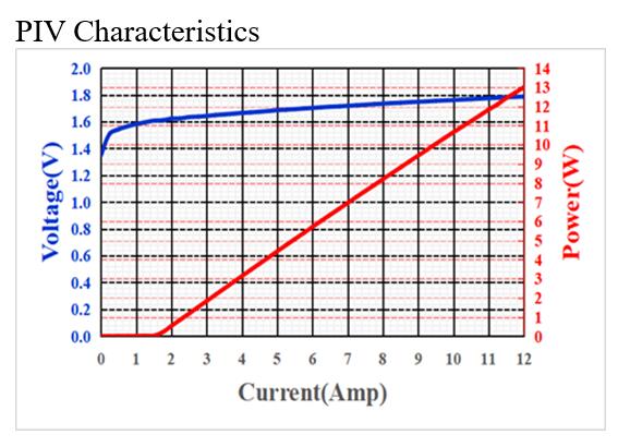 新款10W 808nm半导体激光芯片型号为RB-808B-190-10-4-SE,支持COS封装,发光条宽为190μm,腔长4mm,光电转换效率58%,使用寿命可达20000小时以上。另外该芯片也采用了新型外延结构设计和材料外延,先进的非泵浦窗设计和制备技术以及干湿法腐蚀结合自对准工艺技术,控制条宽的一致性,特别保证大批量生产下的高成品率,降低激光芯片成本。同时新技术的采用大大提高的耐高温特性,使之可以在环境温度60℃甚至更高温的情况下连续工作。